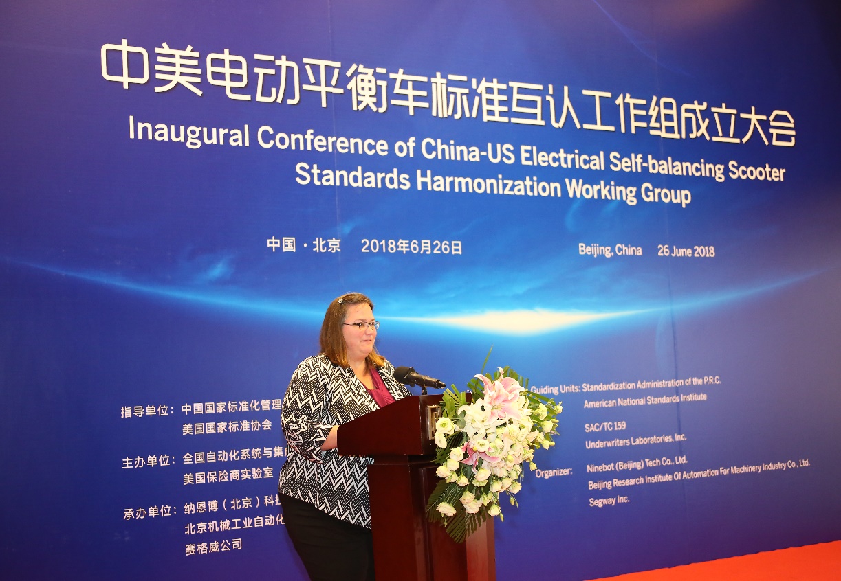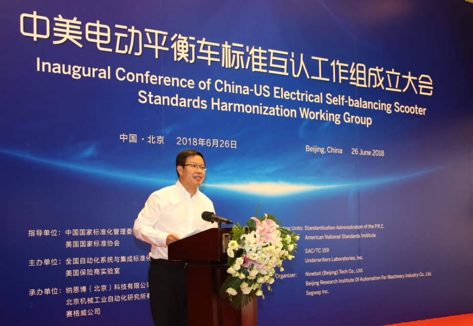 本次大會是在中國國家標(biāo)準(zhǔn)化管理委員會和美國國家標(biāo)準(zhǔn)協(xié)會指導(dǎo)下,由全國自動化系統(tǒng)與集成標(biāo)準(zhǔn)化技術(shù)委員會和美國保險商實驗室聯(lián)合主辦,納恩博(北京)科技有限公司、北京機械工業(yè)自動化研究所有限公司及賽格威公司聯(lián)合承辦。集團產(chǎn)業(yè)發(fā)展部常務(wù)副部長、北自所副總經(jīng)理孟祥宇參加會議。