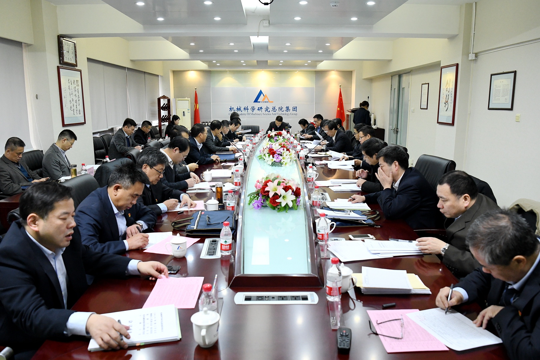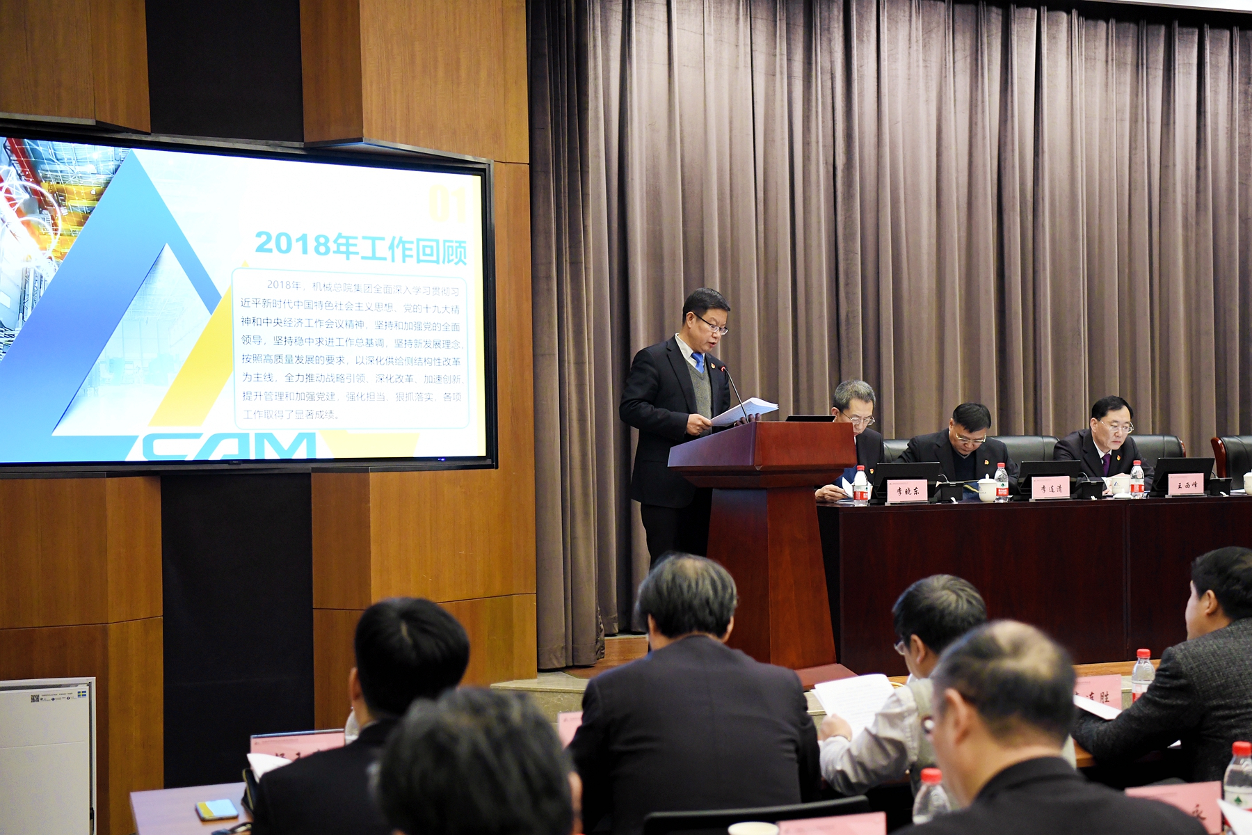 王德成董事長、黨委書記、總經(jīng)理代表集團領(lǐng)導(dǎo)班子在年度工作會議上作了《發(fā)揮黨建優(yōu)勢 深化改革創(chuàng)新 奮力開啟機械總院集團高質(zhì)量發(fā)展新征程》的工作報告,報告全面回顧了機械總院集團2018年度工作,傳達了國資委對中央企業(yè)和地方國資委的工作要求,客觀分析了集團當(dāng)前面臨的形勢和任務(wù),詳細(xì)部署了集團2019年度工作。王德成董事長指出:2018年,機械總院集團全面深入學(xué)習(xí)貫徹習(xí)近平新時代中國特色社會主義思想、黨的十九大精神和中央經(jīng)濟工作會議精神,堅持和加強黨的全面領(lǐng)導(dǎo),堅持穩(wěn)中求進工作總基調(diào),堅持新發(fā)展理念,按照高質(zhì)量發(fā)展的要求,以深化供給側(cè)結(jié)構(gòu)性改革為主線,全力推動戰(zhàn)略引領(lǐng)、深化改革、加速創(chuàng)新、提升管理和加強黨建,強化擔(dān)當(dāng)、狠抓落實,各項工作取得了顯著成績。2019年,機械總院將以習(xí)近平新時代中國特色社會主義思想為指導(dǎo),全面貫徹黨的十九大、十九屆二中、三中全會和中央經(jīng)濟工作會議精神,堅持和加強黨的領(lǐng)導(dǎo),緊緊抓住機械總院集團發(fā)展重要戰(zhàn)略機遇期,按照高質(zhì)量發(fā)展要求,發(fā)揮黨建優(yōu)勢,深化戰(zhàn)略引領(lǐng),做強應(yīng)用型科研、持續(xù)提升創(chuàng)新力,做優(yōu)服務(wù)型產(chǎn)業(yè)、加力行業(yè)服務(wù)引領(lǐng)力,保持技術(shù)經(jīng)濟穩(wěn)定增長,為推動裝備制造業(yè)高質(zhì)量發(fā)展、助力制造強國戰(zhàn)略實施做出新貢獻。